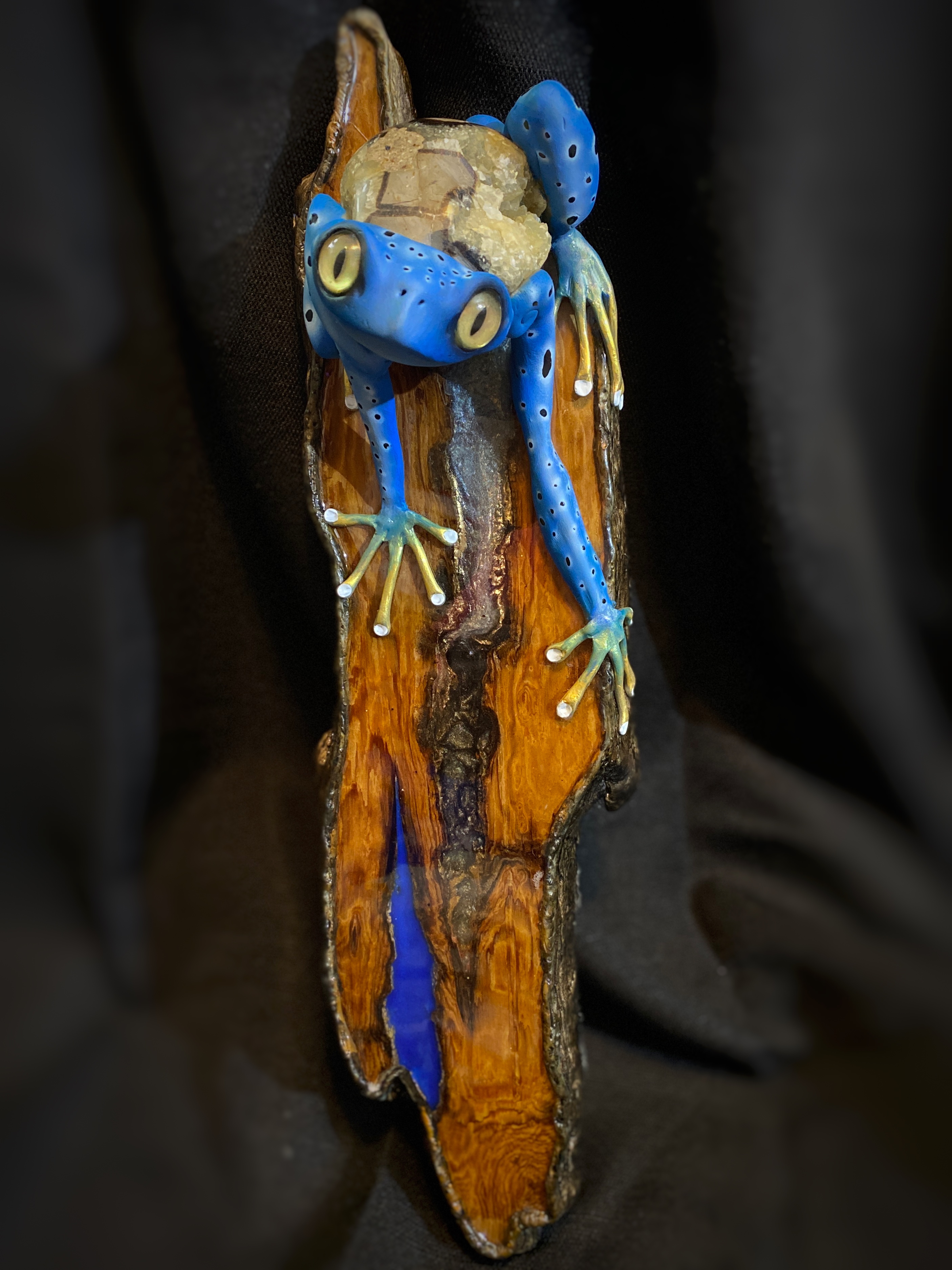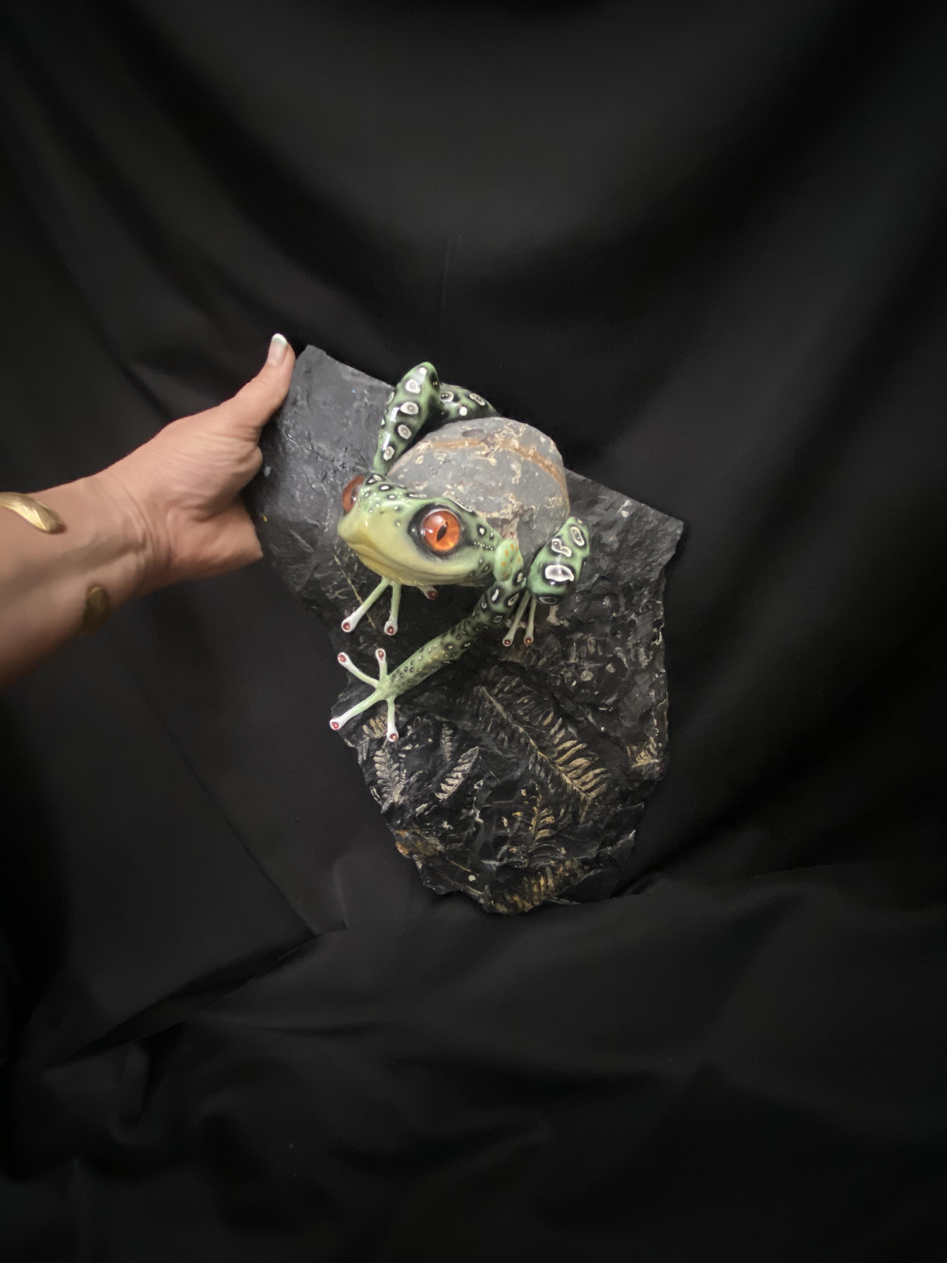 *The legs fins and head, are all hand sculpted to fit the stone, and compliment and flow with the piece of wood or pedestal rock. The materials I use is a combination of 3 types of compounds, that form an incredibly strong bond...much like automotive bondo, and do not shrink. Often, there is armature, or fasteners also used to secure the creature.