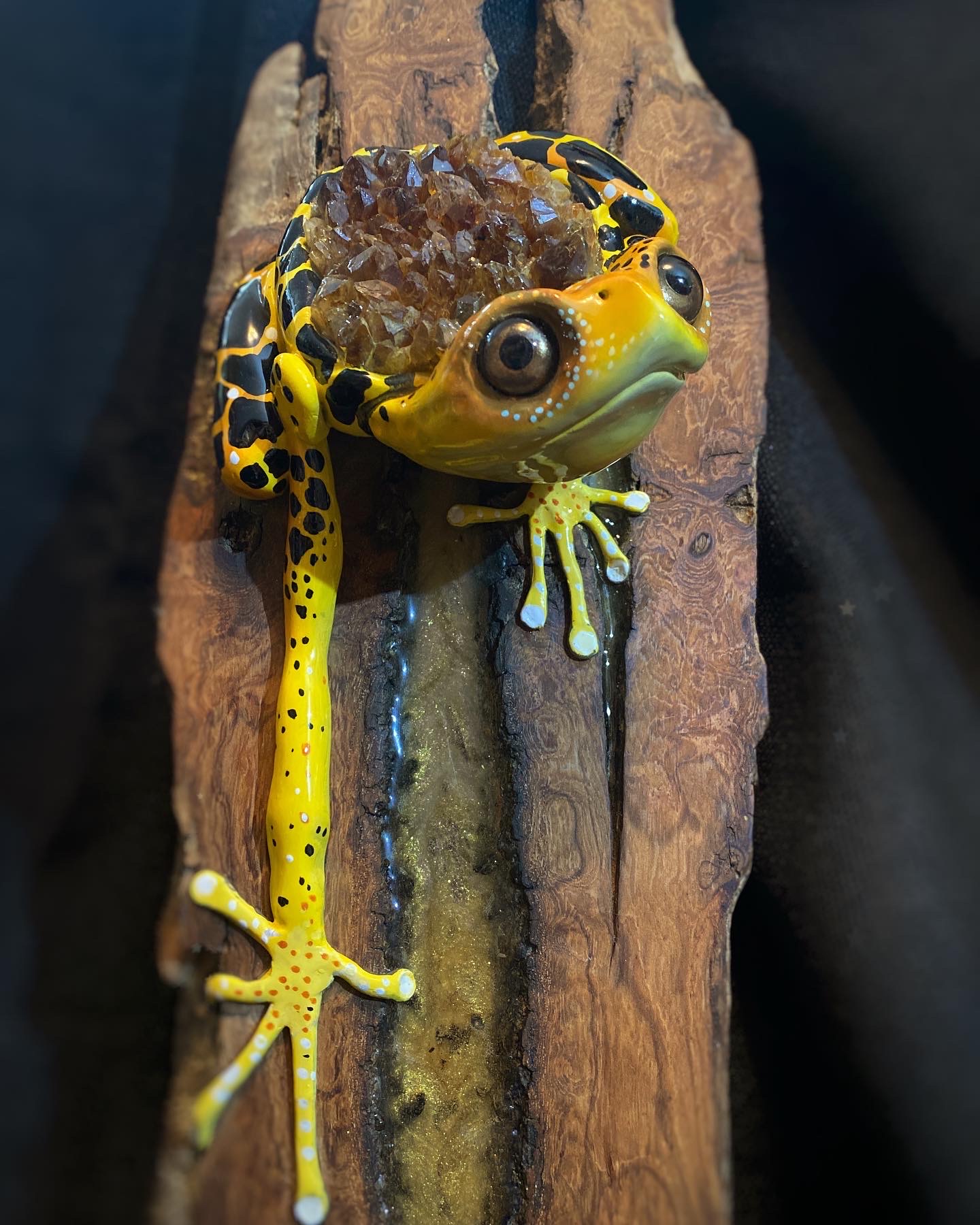 One could say I'm intrigued with the "smallities" in nature...a stone isn't always just a stone, a piece of wood isn't just wood. It's carries a whole story, I still see these things as fantastical treasures! Where has it been, how old is it, How did it form..what lived near it? With my sculptures, I want to utilize the stone or wood in it's natural form, and make the creature on it, as if it has always lived there, as though it was always part of that scenery. Make it have movement, maybe look precarious, and evoke a sort of wonderment.